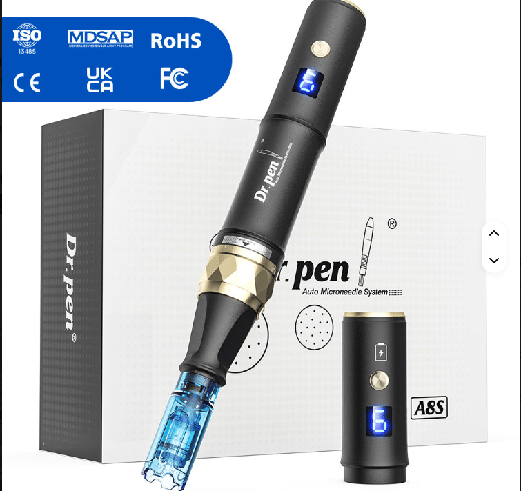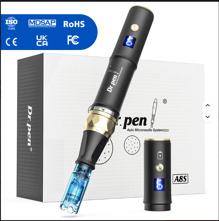 The Dr. Pen A8s is an advanced microneedling system known for its adjustable depth settings, consistent needle delivery, and comfort-focused design.